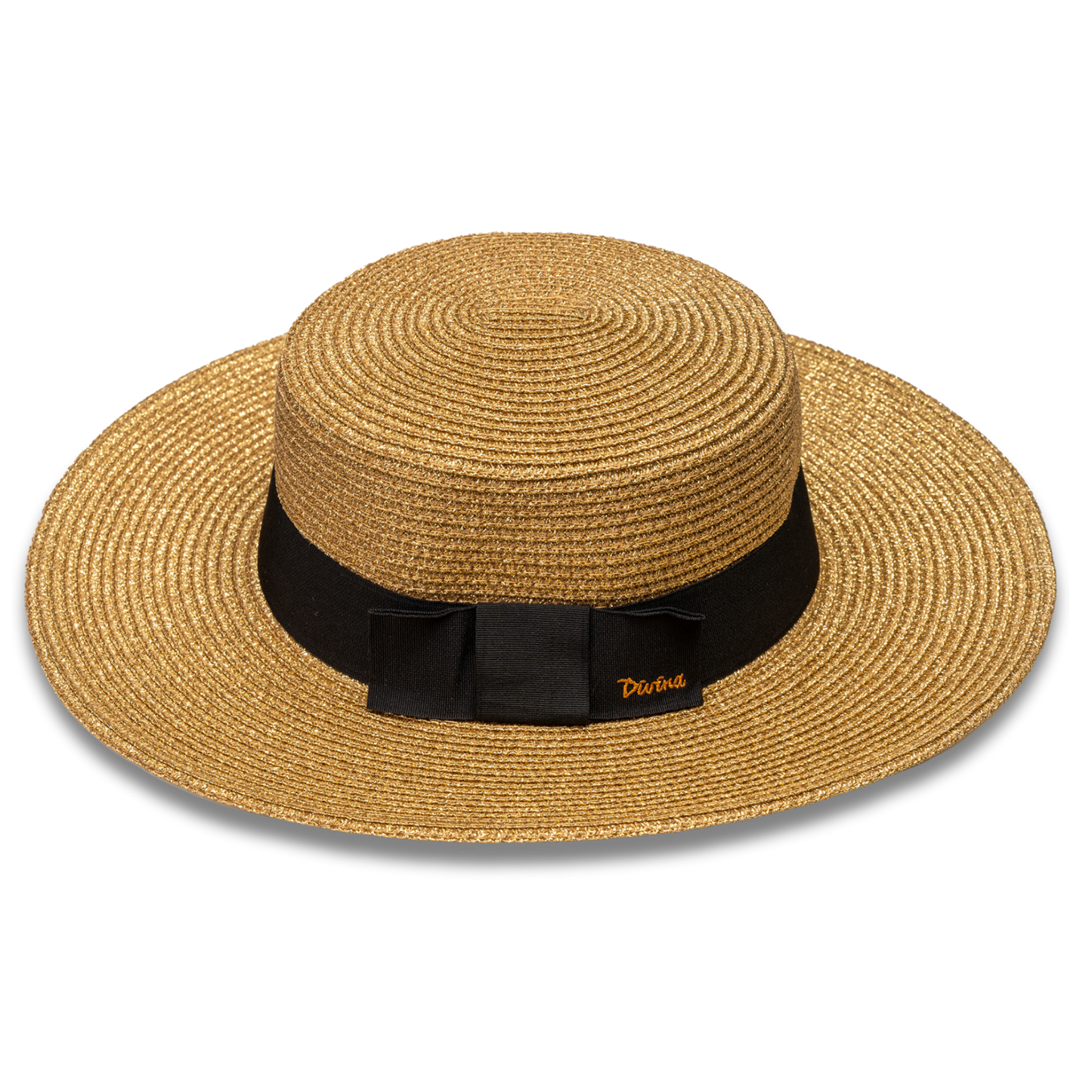 The Elara Boater is the epitome of summer sophistication. Crafted from woven straw with a stiff frame and flat brim, this hat offers timeless style, accented with a black band with an elegant bow and subtle embroidered signature.