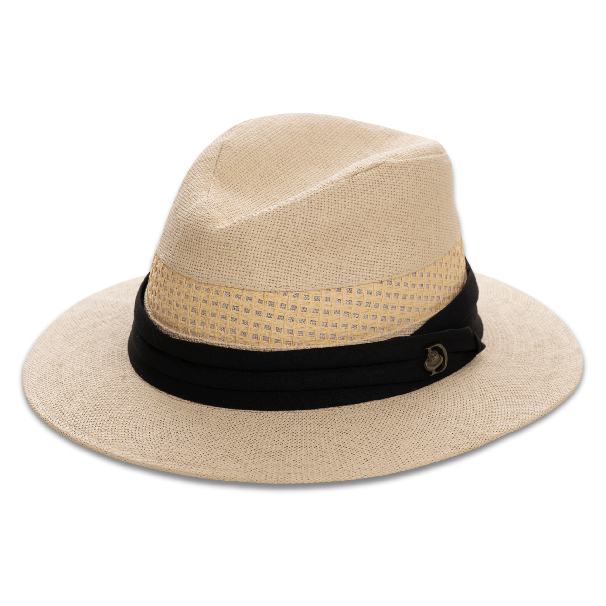 Inspired by the casual elegance of the islands, the Samos Hat is the perfect ally for the man who loves to stand out with class under the sun. Made of lightweight woven paper straw, it features a matching perforated band with geometric decorations and a pleated black ribbon that wraps around the crown with character. Elegant yet breathable, it is ideal for summer days, outdoor events or Mediterranean-style holidays. An accessory that combines refined aesthetics and functionality.