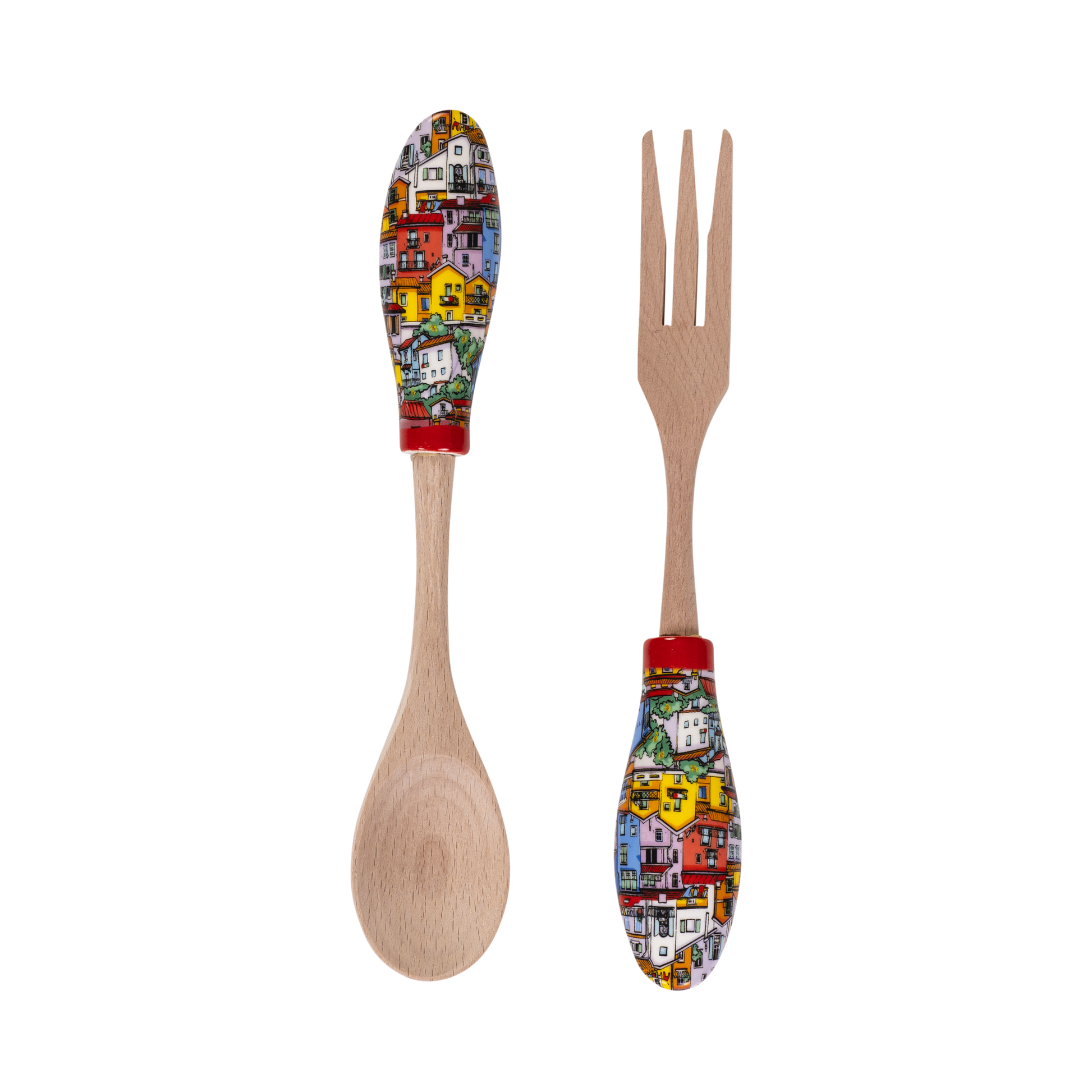 Coppia Posate in Ceramica e Legno - Tiny Houses - SF189