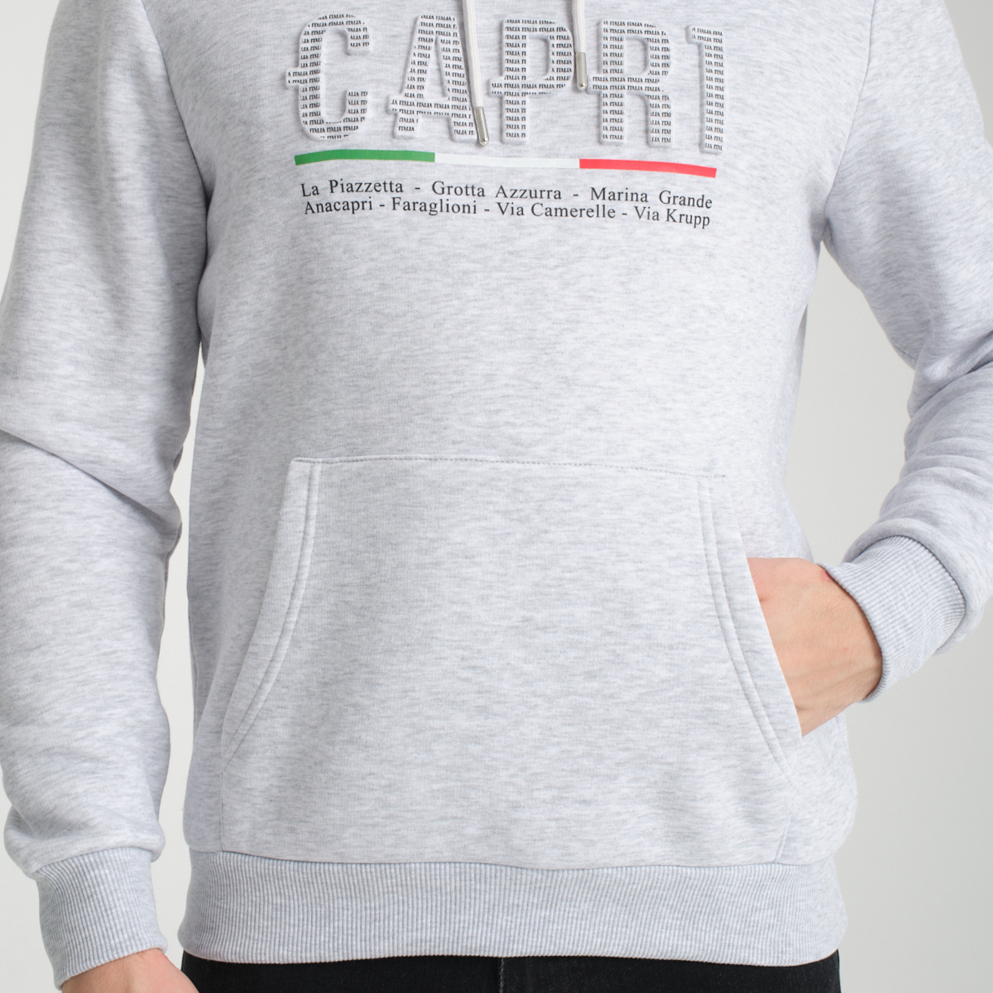 La Felpa con Cappuccio Hoodie Capri Locations Snow Melange celebra l’isola di Capri attraverso un design elegante e ricco di significato. Sul petto, la scritta CAPRI è accompagnata dai nomi dei luoghi iconici dell’isola — dalla Grotta Azzurra ai Faraglioni, da Anacapri a Marina Grande — in un omaggio grafico che unisce stile e identità italiana.