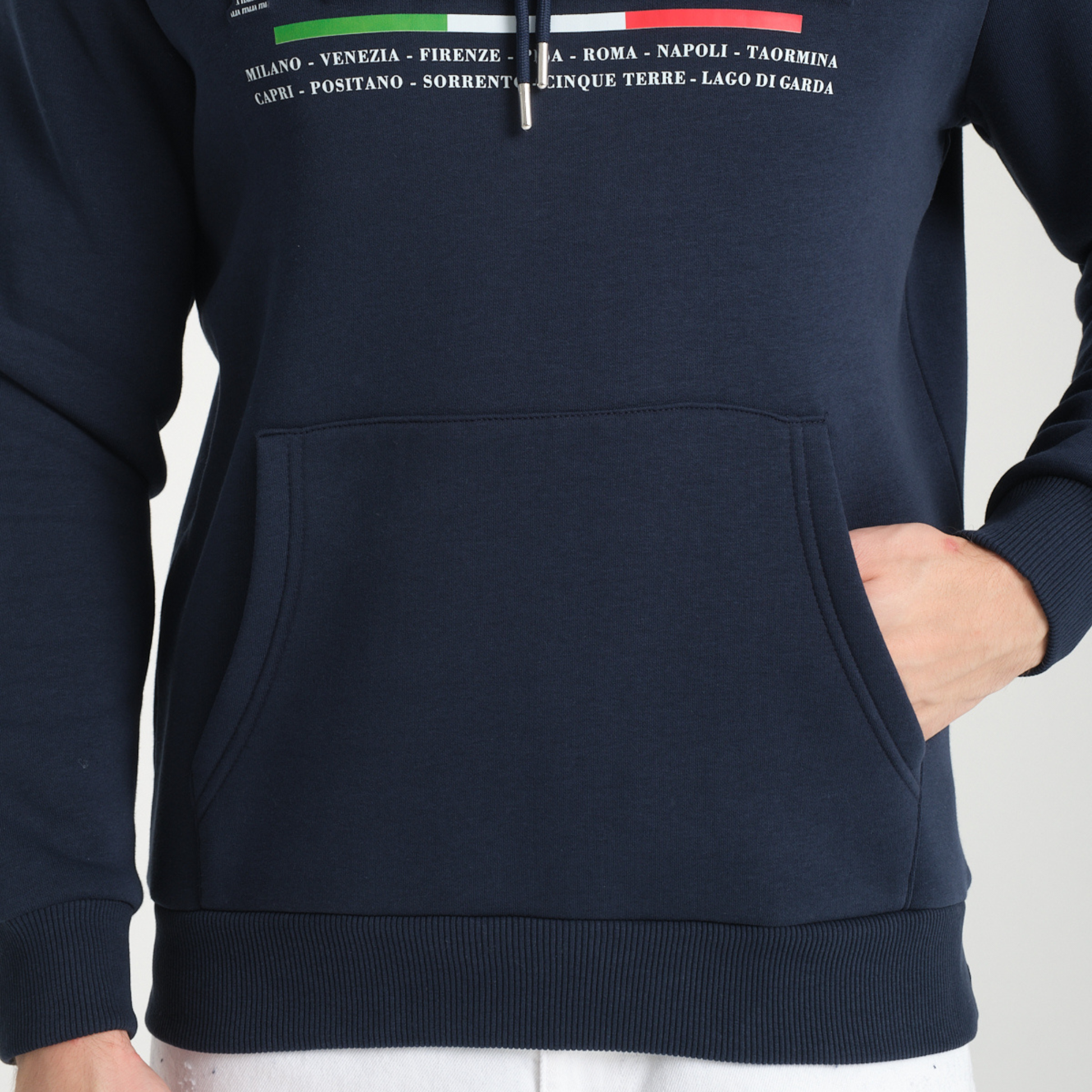 Felpa con Cappuccio Hoodie Italia Blu Navy - Interno Felpato - Felpa 20