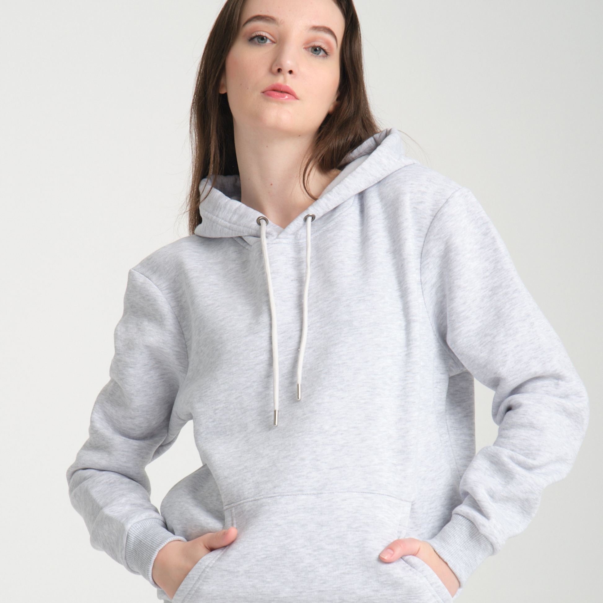 L’interno felpato garantisce calore e comfort, mentre il cappuccio regolabile con coulisse e la tasca frontale a marsupio aggiungono funzionalità e un tocco sportivo. Il colore Snow Melange, moderno e neutro, la rende estremamente versatile e facile da abbinare con qualsiasi outfit.