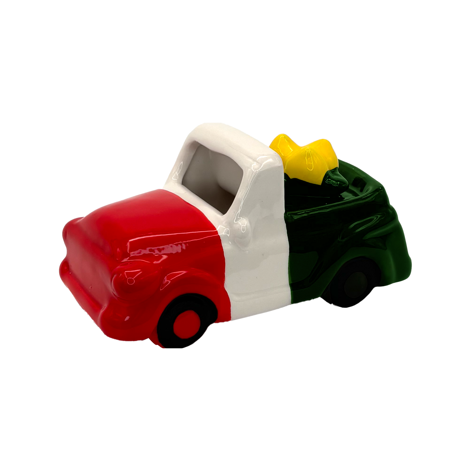 Originale macchinina in ceramica smaltata, pensata come piccolo contenitore da appoggio e complemento d’arredo. Un oggetto decorativo dal carattere vivace, ideale per portare colore in cucina, in soggiorno o sulla scrivania. Perfetta anche come idea regalo.