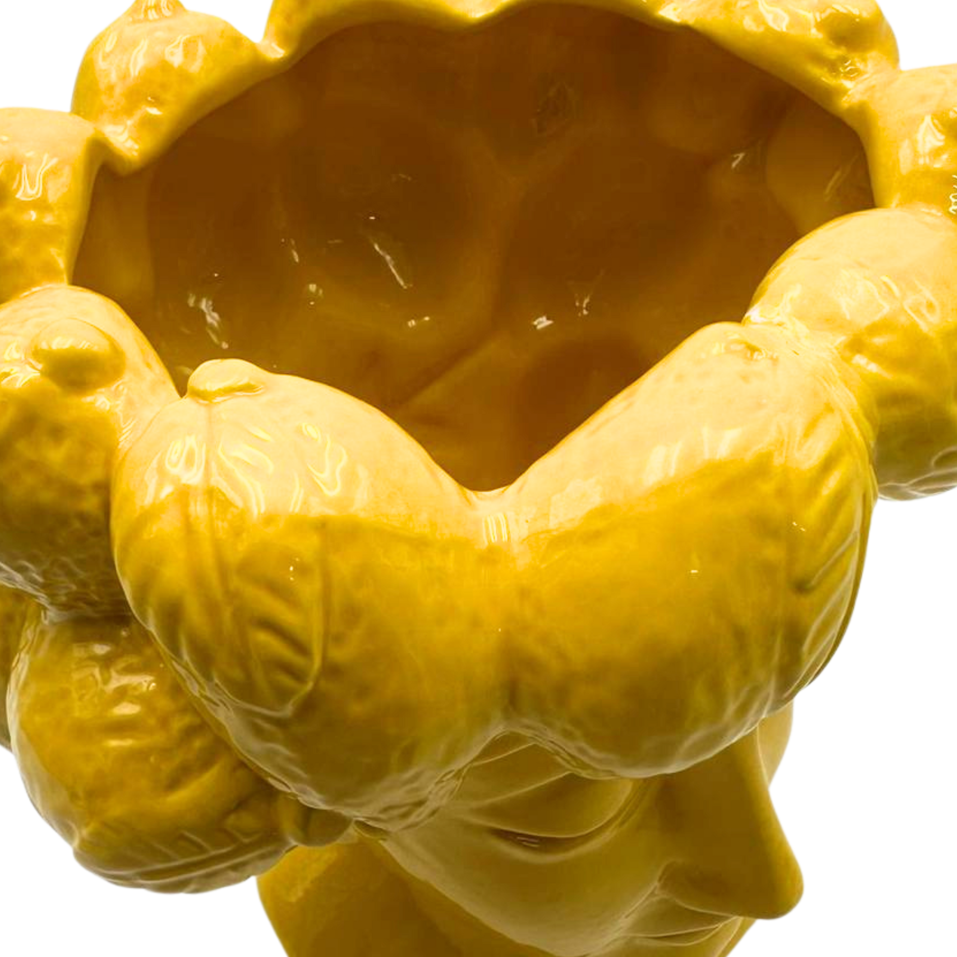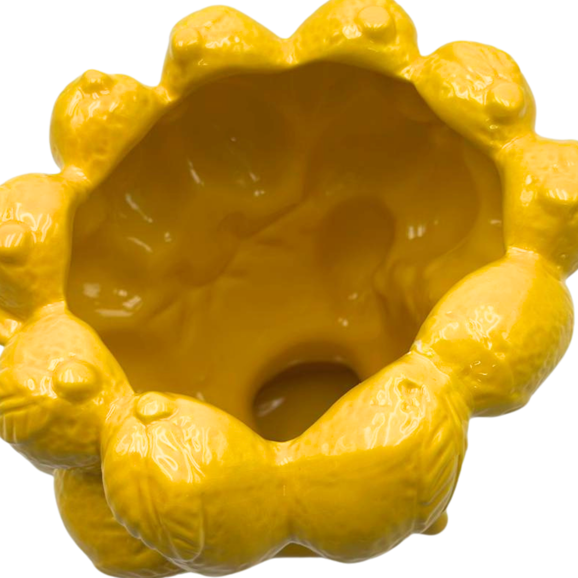 Perfetta come centrotavola, soprammobile, vaso o elemento d’arredo per soggiorno, ingresso, cucina o boutique, aggiunge luminosità e artigianalità a qualsiasi spazio. La sua finitura gialla brillante dona energia, stile e un richiamo immediato al calore siciliano.