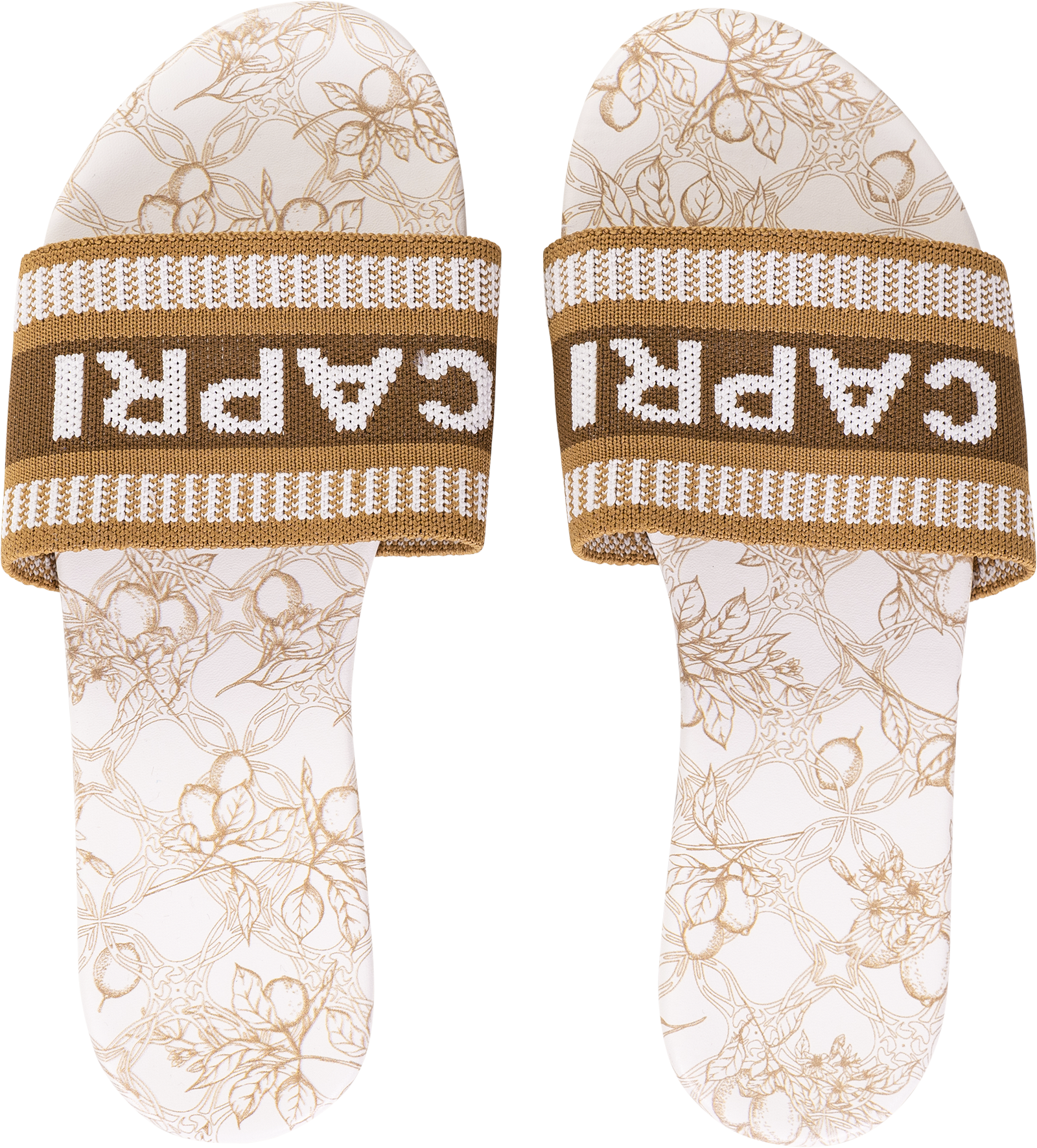 Ciabatte a Fascia Donna – CAPRI, Stampa Limoni, Look Mediterraneo - Beige