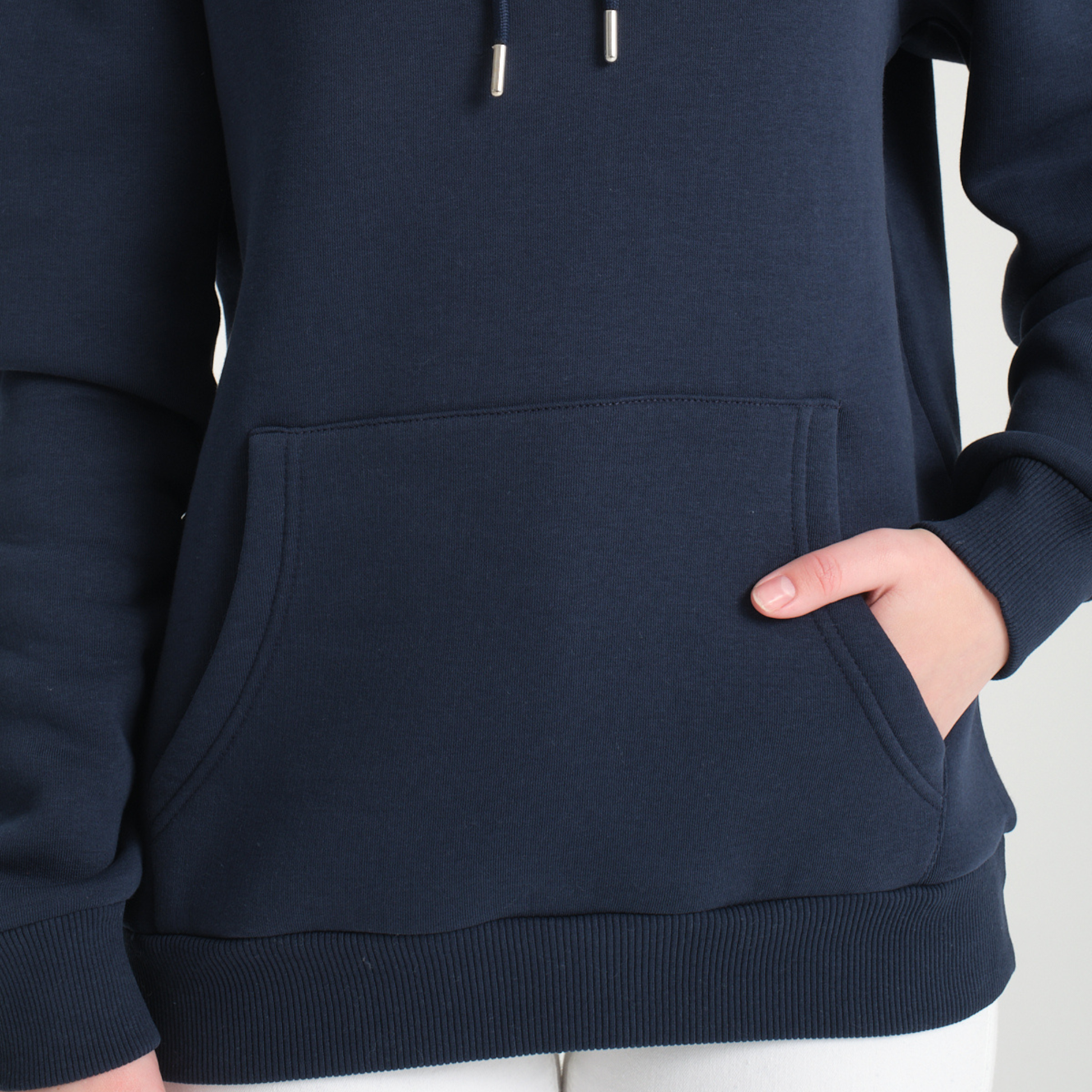L’interno felpato assicura calore e comodità anche nelle giornate più fredde, mentre il cappuccio regolabile con coulisse e la tasca frontale a marsupio aggiungono praticità e stile. Il colore blu navy la rende versatile e facilmente abbinabile, ideale per outfit casual, sportivi o urban.