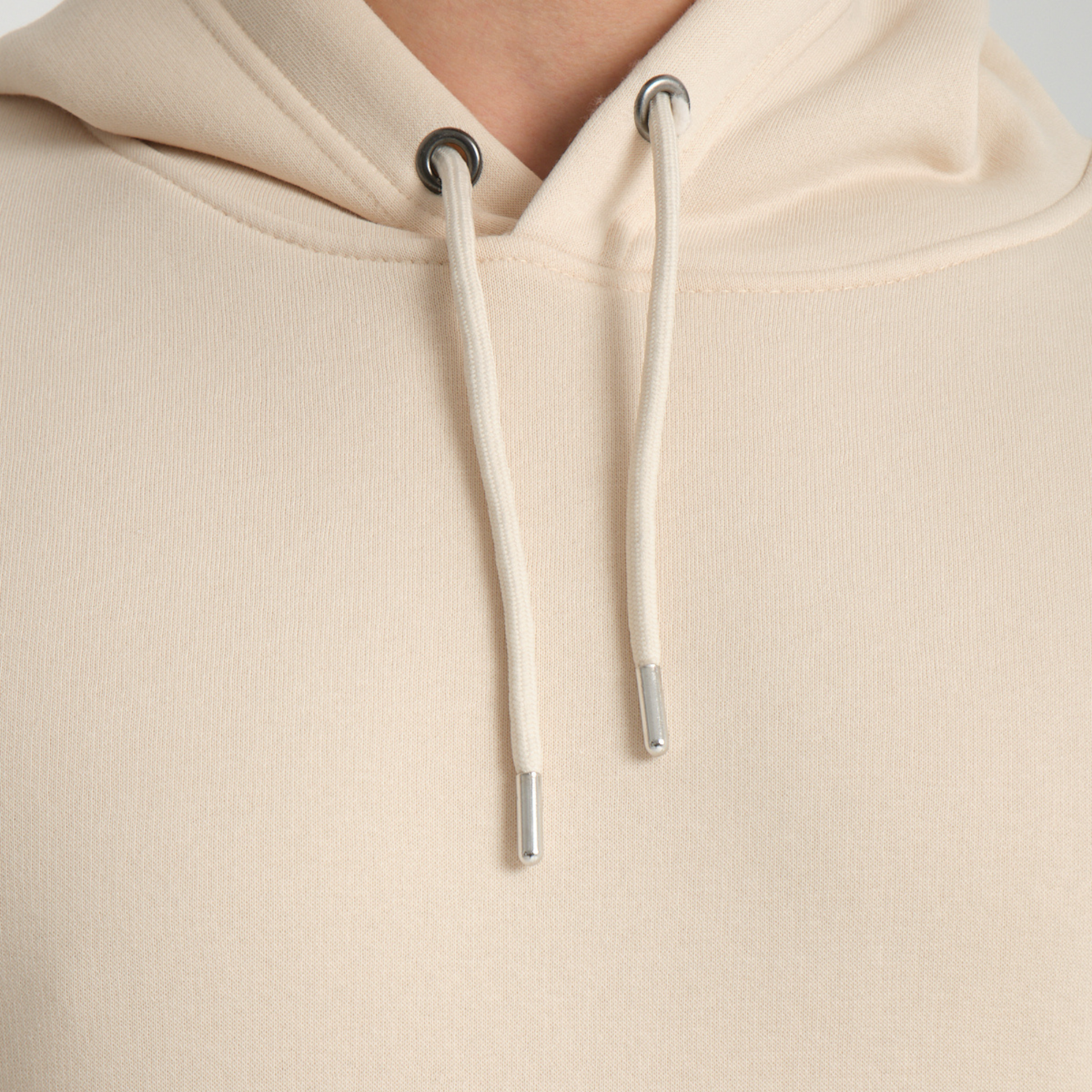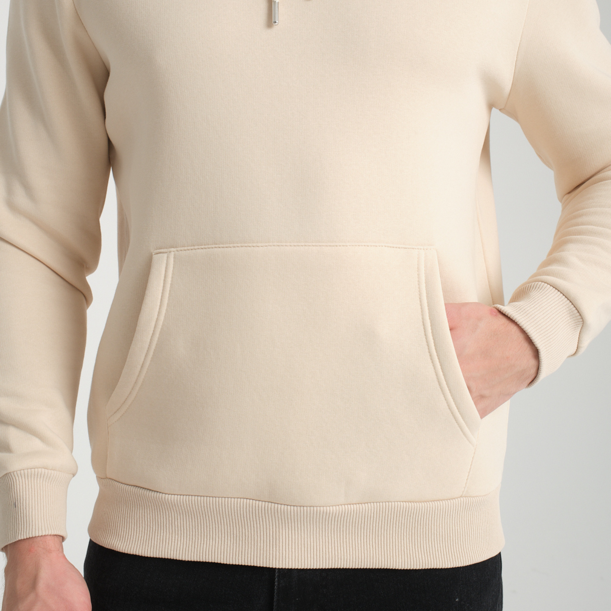 L’interno felpato dona comfort e protezione nelle giornate più fresche, mentre il cappuccio regolabile con coulisse e la tasca frontale a marsupio aggiungono praticità e un tocco sportivo. Il colore Yellow Butter, chiaro e sofisticato, rende questa felpa estremamente versatile e facile da abbinare a qualsiasi look.