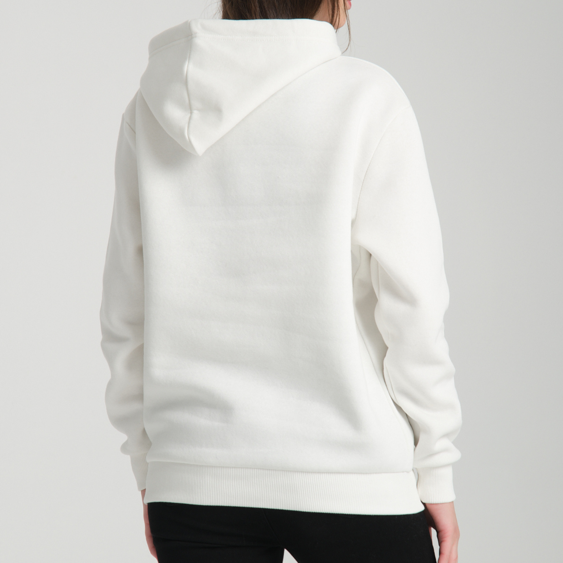 L’interno felpato garantisce calore e comfort, mentre il cappuccio regolabile con coulisse e la tasca frontale a marsupio assicurano praticità e un tocco sportivo. Il colore bianco esalta la semplicità e la versatilità del design, rendendola perfetta per ogni abbinamento e occasione.