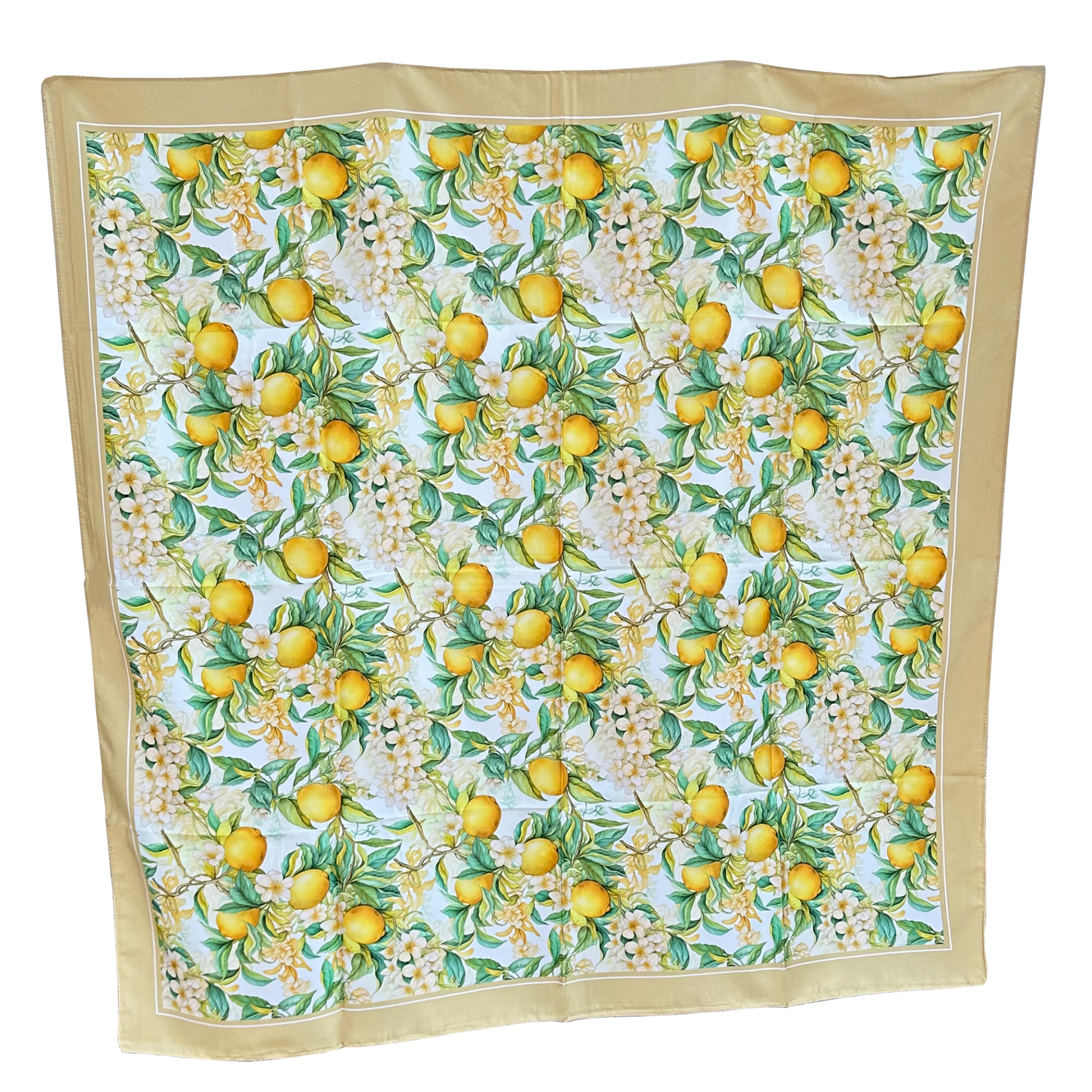Un foulard elegante e raffinato che celebra la bellezza e la delicatezza degli agrumeti in fiore.