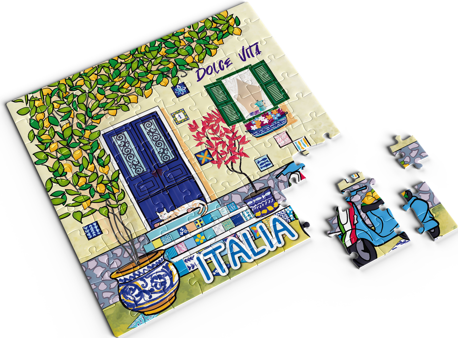 Scopri la bellezza Italiana con questo puzzle da 100 pezzi. Un piccolo viaggio tra paesaggi suggestivi, colori vivaci e dettagli che raccontano l’anima del territorio.