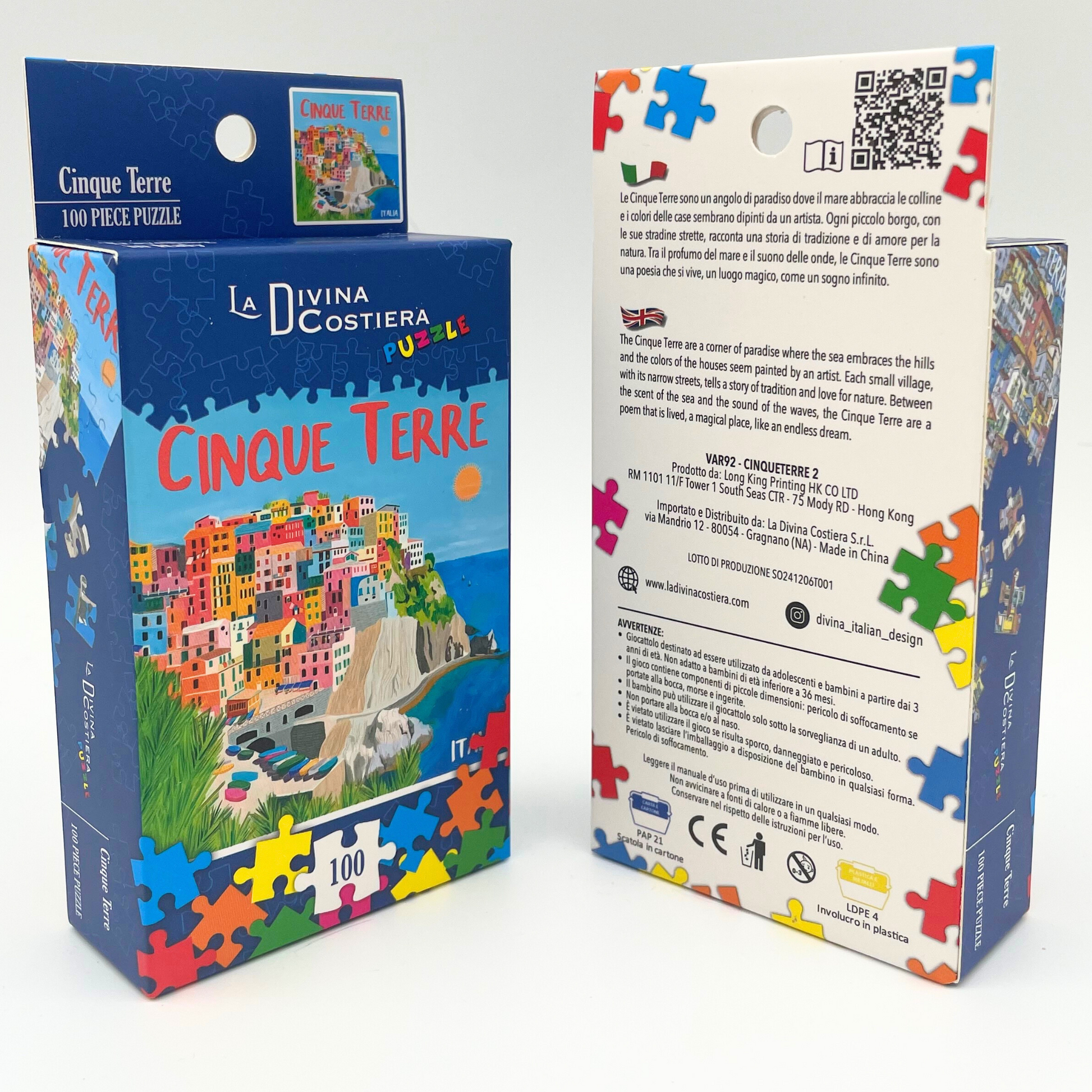 Scopri la bellezza di Cinque Terre con questo puzzle da 100 pezzi. Un piccolo viaggio tra paesaggi suggestivi, colori vivaci e dettagli che raccontano l’anima del territorio.
