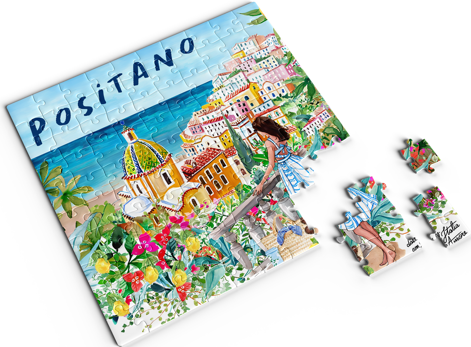 Scopri la bellezza di Positano con questo puzzle da 100 pezzi. Un piccolo viaggio tra paesaggi suggestivi, colori vivaci e dettagli che raccontano l’anima del territorio.