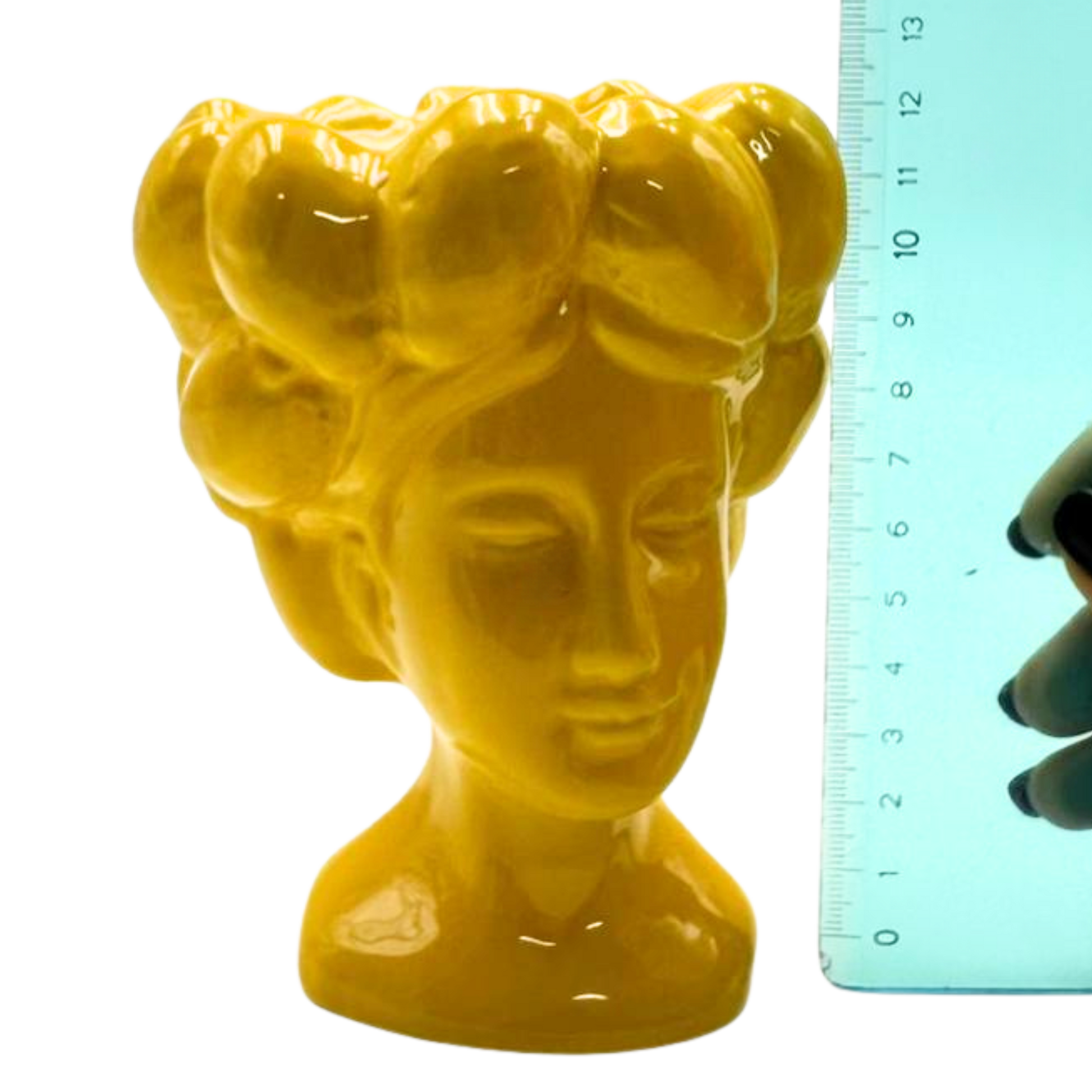 Realizzata in ceramica smaltata lucida, questa mini testa di moro è caratterizzata da un design elegante, linee delicate e un vibrante colore giallo limone, perfetto per illuminare qualsiasi ambiente.